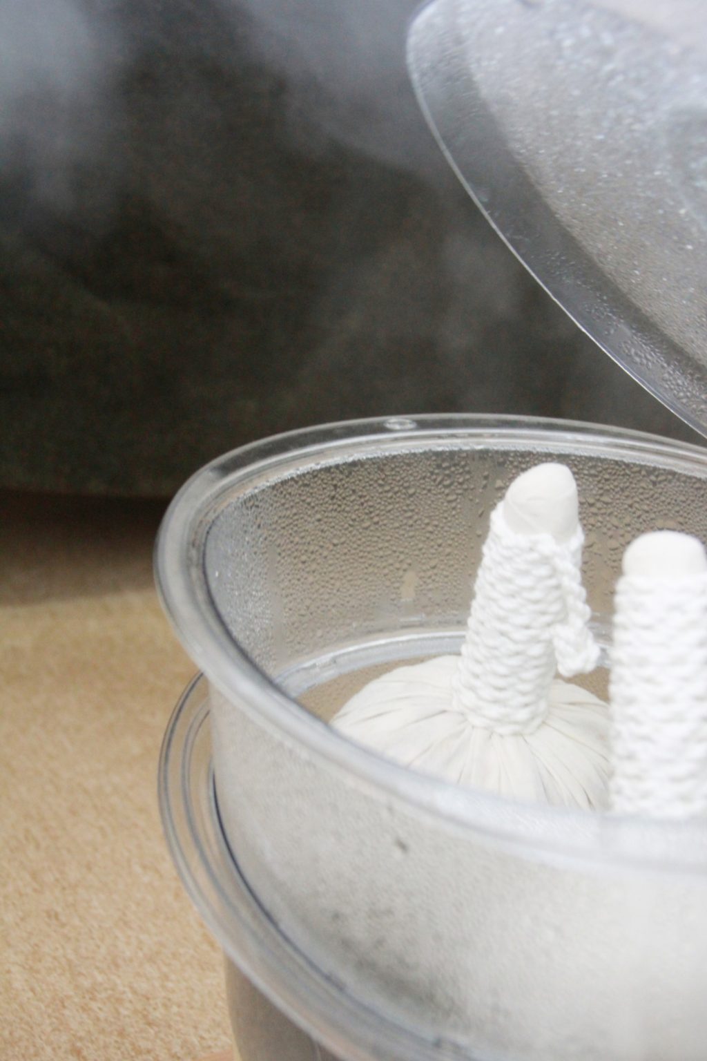 スチーマーで蒸したハーブボールで温めてから、