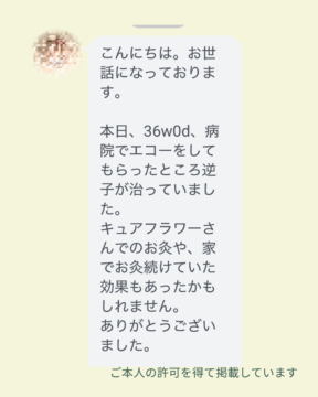 「健診で逆子が整っていました」とのご報告をいただきました。